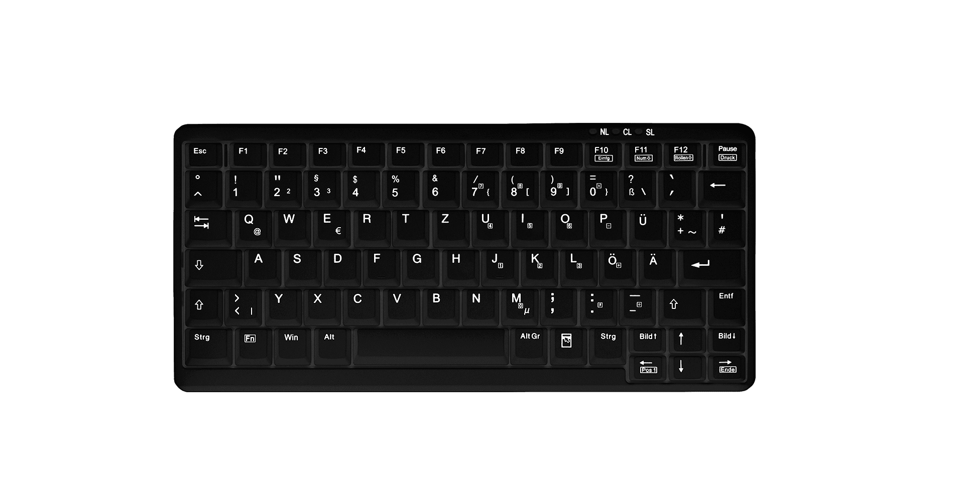 Durch den gleichenTastenabstand wie bei einer herkömmlichen Desktop-Tastatur eignet sich diese Tastatur auch für den Einsatz im Bürobereich und für Vielschreiber.