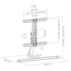Die Halterung lässt sich stufenlos zwischen +5 und -10° neigen und ist zudem ±35° schwenkbar. Die Höhe lässt sich über die Einhängestufen zwischen 583 und 733 mm variieren.