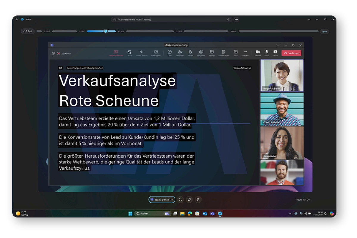 [1] Simuliertes Bildschirmfoto. Die Funktion Recall ist für ausgewählte Sprachen optimiert: Deutsch, Englisch, Französisch, Spanisch, Chinesisch (vereinfacht) und Japanisch. Es gelten Inhalts- und speicherbasierte Einschränkungen. Weitere Informationen.