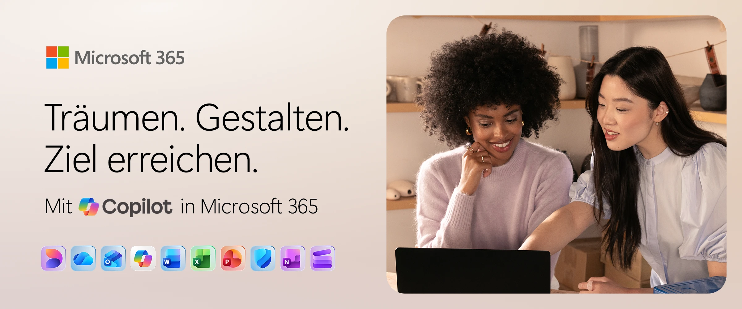 Bestehende Abonnent*innen von Microsoft 365 Single und Family erhalten automatisch Zugang zu Copilot sowie zu den KI-Funktionen in Microsoft Designer, sobald sie auf die neueste Version aktualisieren.