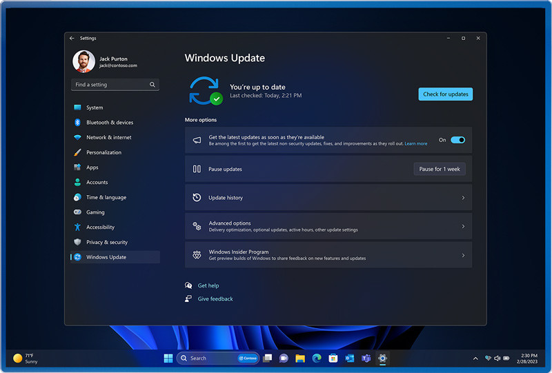Steigern Sie noch heute Ihre Effizienz und profitieren Sie von kontinuierlichen Innovationen – mit Windows 11 Pro Geräten. Mit Windows Update for Business erhalten Sie automatisch die neuesten Features. Darüber hinaus können Sie mithilfe von Cloud-Tools Ihre Effizienz noch weiter steigern, z. B. durch eine Zero-Touch-Bereitstellung, die Berichten zufolge 25 % schneller ist.3