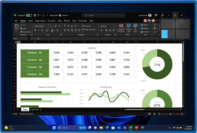 Vereinfachen Sie Ihren Arbeitstag mit Features und einer Leistung, mit denen anspruchsvolle Workloads im Durchschnitt 42 % schneller abgeschlossen werden können.2 Mit KI-gestützten Prozessen, intelligenten Workflows und unübertroffener Personalisierung können Sie alle anfallenden Aufgaben auf Ihrem Windows 11 Pro Gerät erledigen.