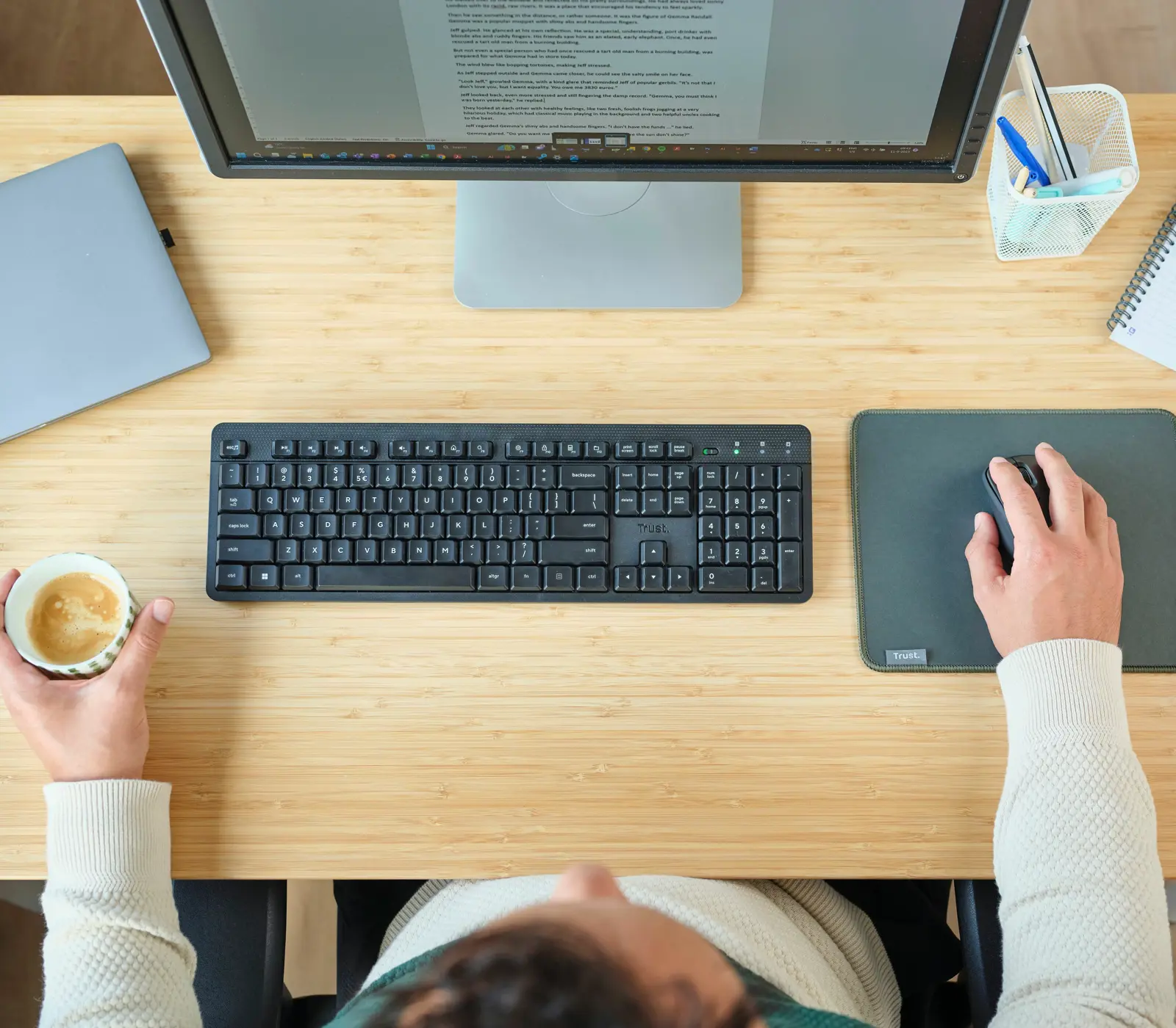 Flache und leise kabellose Tastatur für stundenlangen Arbeitskomfort
