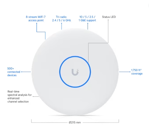 UbiQuiti UniFi U7-Pro XGS - Indoor Drahtlose Basisstation - WiFi7