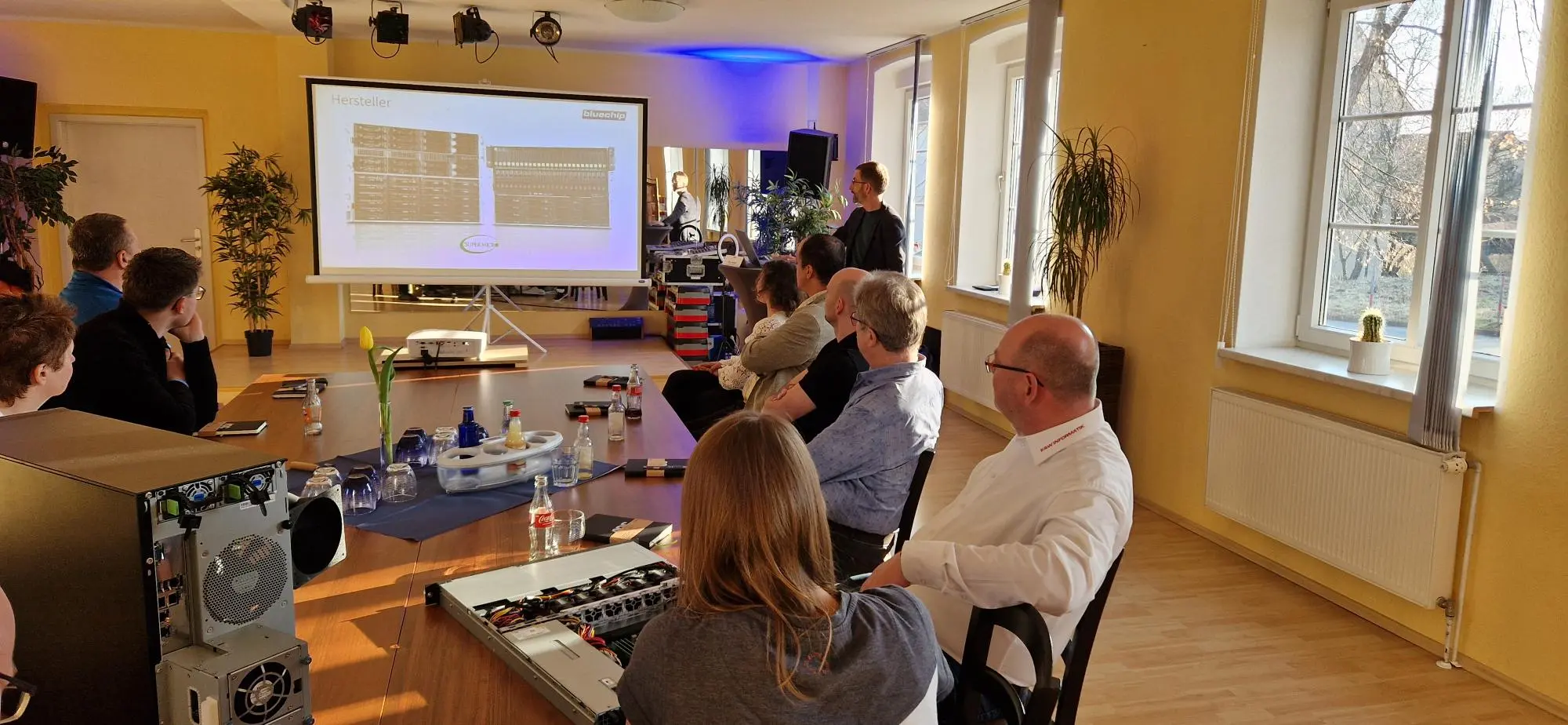 Im Mittelpunkt standen verschiedene Präsentationen rund um aktuelle IT-Lösungen und Produktneuheiten. Vorgestellt wurden unter anderem eine wassergekühlte High-End-Workstation mit der neuesten Grafikkarte NVIDIA RTX PRO 4500 Blackwell, innovative Client-Systeme mit Windows 11 Pro, professionelle Displays von AOC sowie aktuelle Entwicklungen im Bereich bluechip Server- und Cloud-Lösungen.