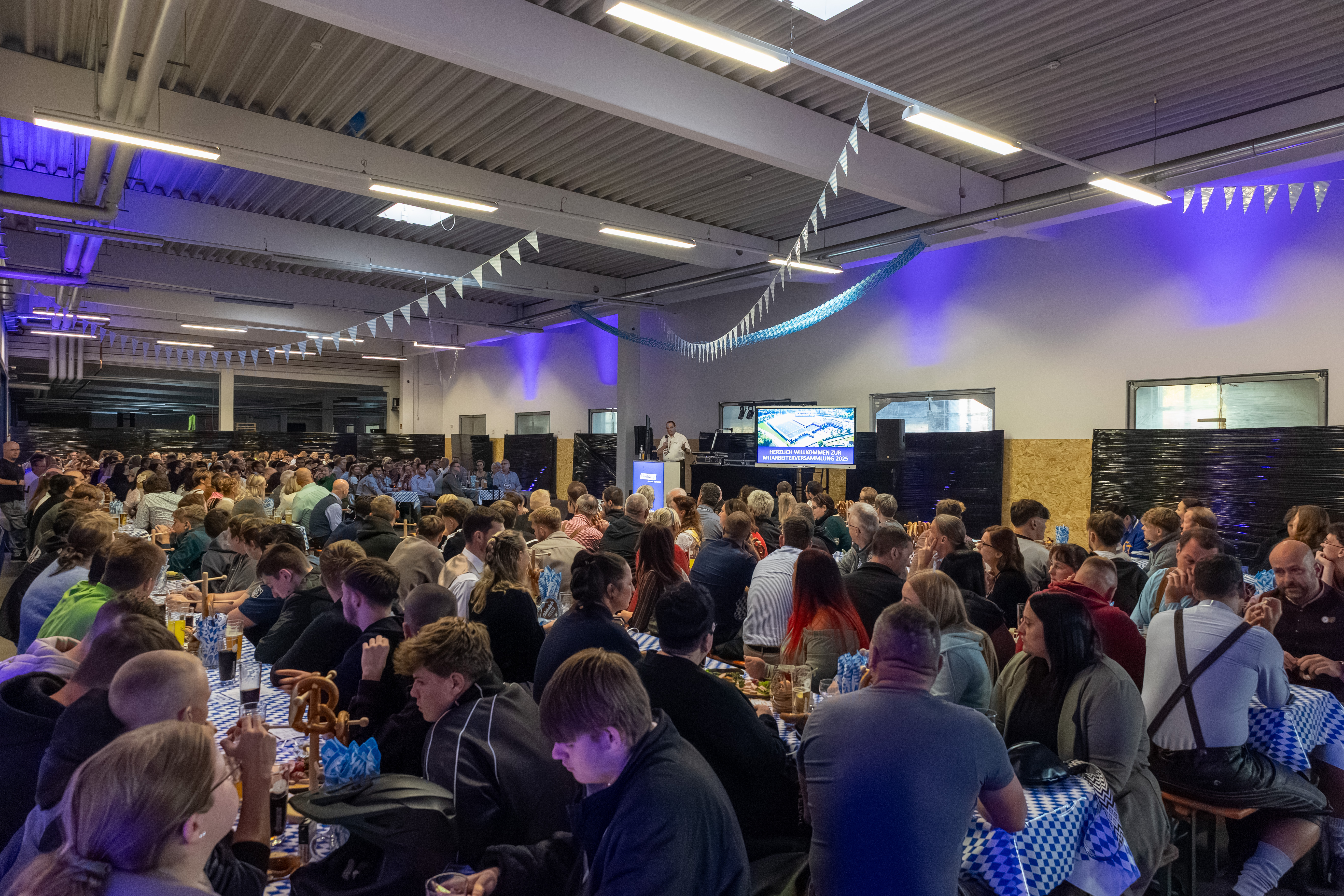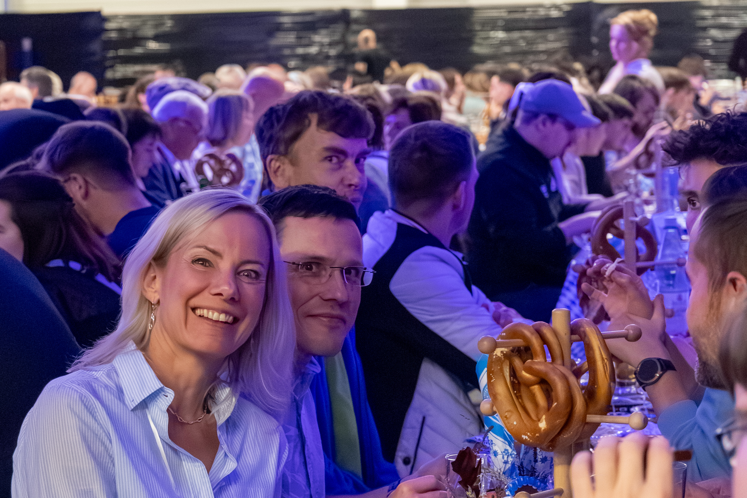 Schon beim Betreten der festlich geschmückten Location kamen Wiesn-Gefühle auf: Blau-weiße Dekoration, Bierbänke und viele Kolleginnen und Kollegen in Dirndl und Lederhose sorgten für eine authentische Atmosphäre. Für das leibliche Wohl war bestens gesorgt – mit bayrischen Spezialitäten wie Hendl, Brezn, Haxn und erfrischenden Getränken.