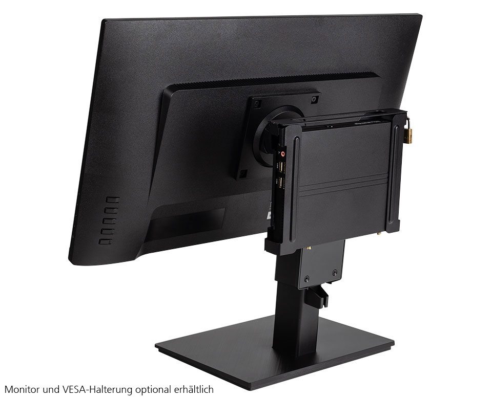 Dank der Montageschnittstelle gestaltet sich die Integration des bluechip BUSINESSline M11100g-P an Monitor oder Wand besonders einfach, was seine Vielseitigkeit noch weiter unterstreicht. Für zusätzliche Flexibilität ist die VESA-Halterung optional erhältlich, um den Mini-PC optimal an Ihre individuellen Anforderungen anzupassen.