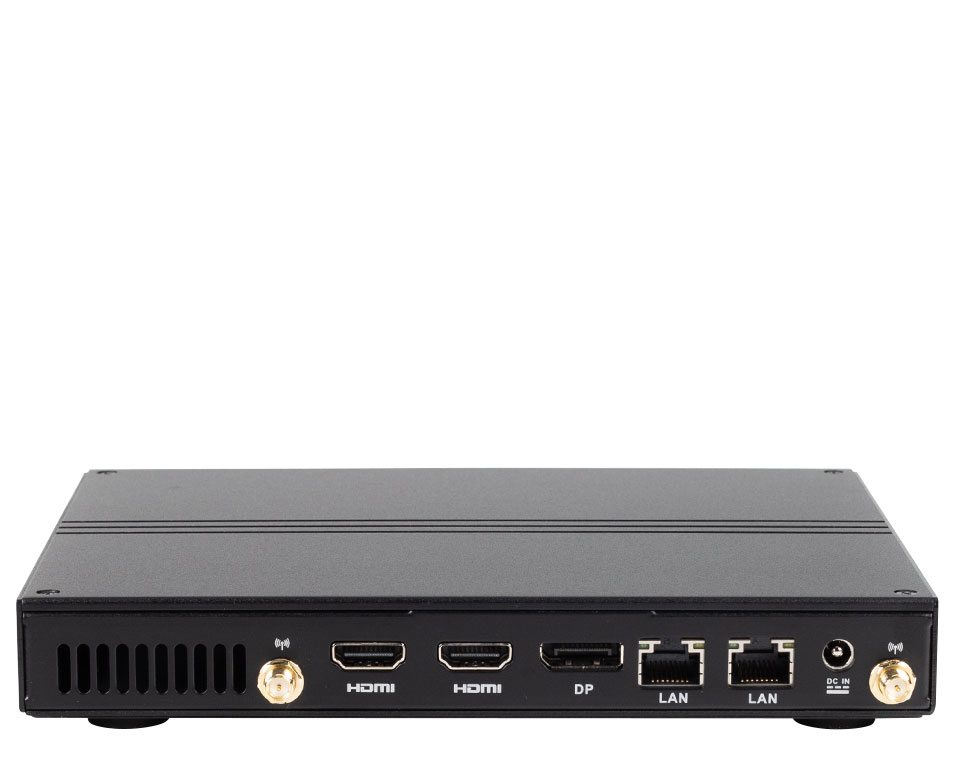 Mit seinem passiven Kühlsystem und lüfterlosen Design ermöglicht der M11100g-P einen beeindruckend leisen Betrieb, der speziell für den Dauerbetrieb (7×24 Stunden) optimiert ist. Dieser Mini-PC eignet sich ideal für den Einsatz in digitalen Werbetafeln, Kiosken, Verkaufsautomaten und vielem mehr.