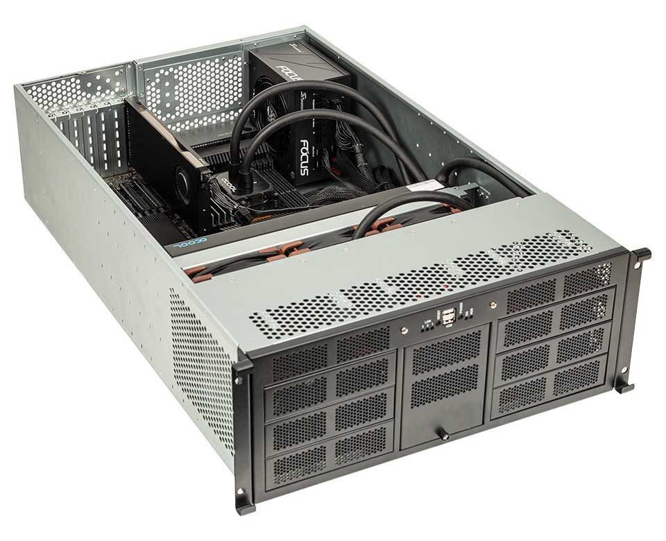 Die leistungsstarke Workstation wurde speziell für höchste Anforderungen in professionellen Design-, Modellierungs-, Simulations- und Rendering-Anwendungen entwickelt. Untergebracht in einem robusten 19"-Rackgehäuse mit effizienter Wasserkühlung vereint sie kompromisslose Leistung mit zuverlässiger Kühlung.