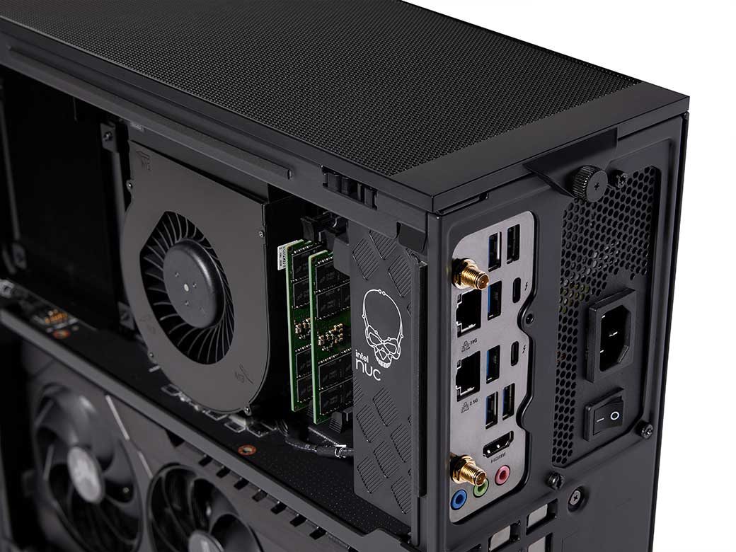 Mit einem Volumen von gerade einmal 13 Litern ist die Workstation WS800 der leistungsstärkste Mini-PC in unserem Portfolio. Das modulare Intel® NUC 13 Extreme Compute Element ist das Herzstück des Systems und bietet die Möglichkeit, Grafik, Arbeitsspeicher, SSDs und Betriebssystem individuell anzupassen. Bis zu 64 GB Dual-Channel-DDR5 Speicher und bis zu drei PCle® 4.0 NVMe™ SSDs sorgen für Flexibilität und Leistungsreserven. Außerdem verfügt die WS800 über Intel® Wi-Fi 6E und zwei LAN-Ports (10 Gb/s und 2,5 Gb/s) für blitzschnelle kabelgebundene und kabellose Netzwerkeinbindung.