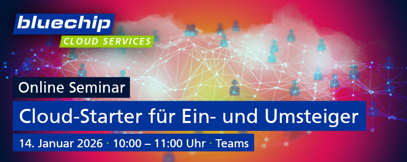 Wir freuen uns, Sie am Mittwoch, den 14. Januar 2026, um 10:00 Uhr per Microsoft Teams digital begrüßen zu dürfen. In diesem kostenfreien Teams-Meeting erhalten Sie einen Überblick über unser bluechip Cloud-Center.