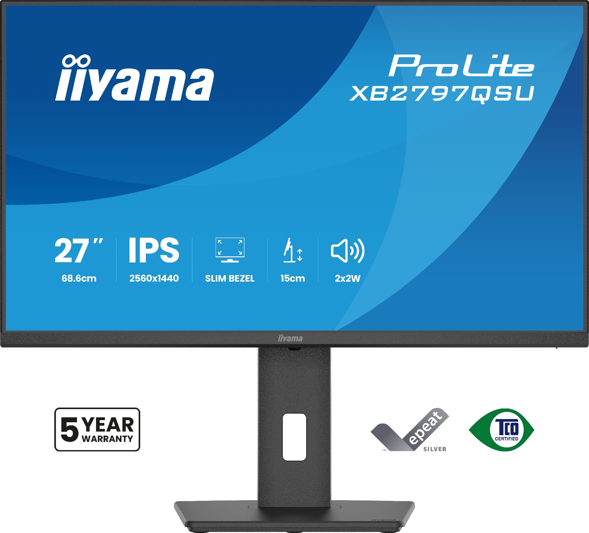 27" (68.6 cm) QHD-IPS-Monitor mit vierseitig schmalem Rahmen, ergonomischem Standfuß und EPEAT-Silber-Zertifizierung