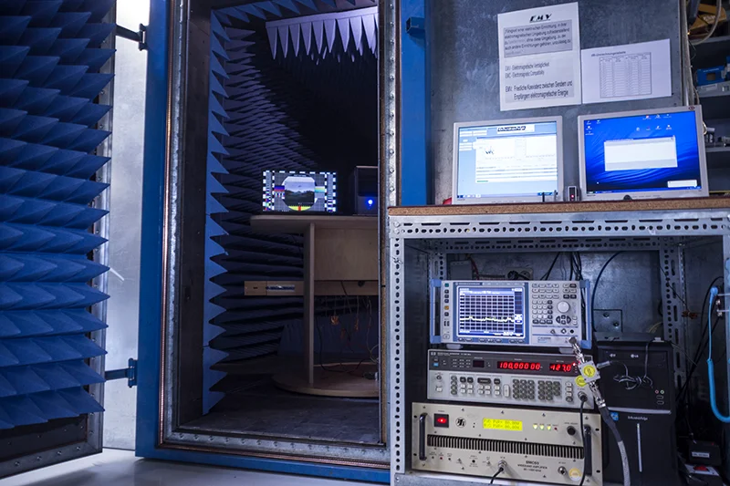 Für alle Bereiche stehen umfangreiche Mess- und Prüfverfahren zur Verfügung, u.a. ein bluechip-eigenes EMV-Meßlabor.